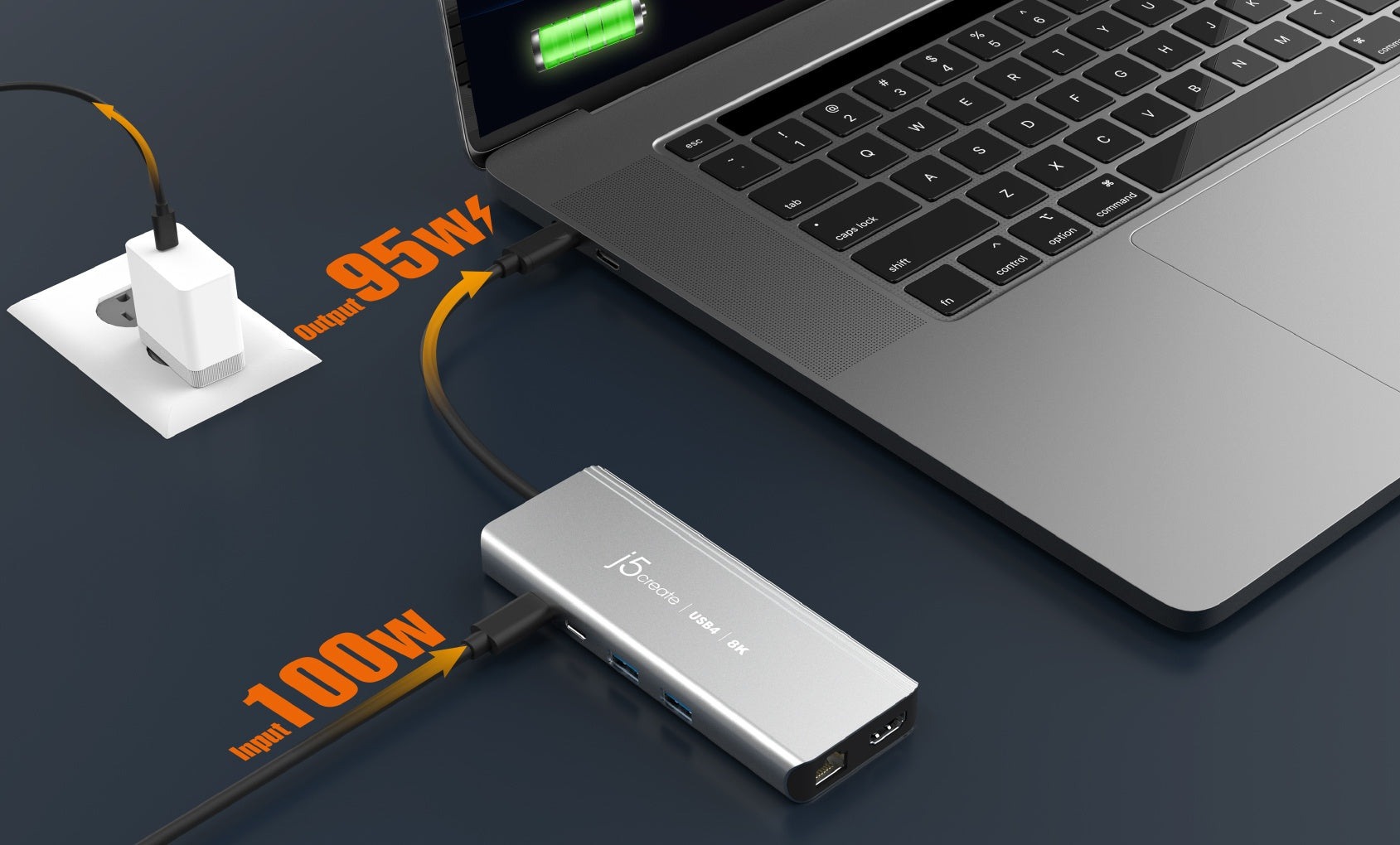 Сумісність із USB-C® Power Delivery для забезпечення швидкої зарядки ноутбука потужністю до 95 Вт.