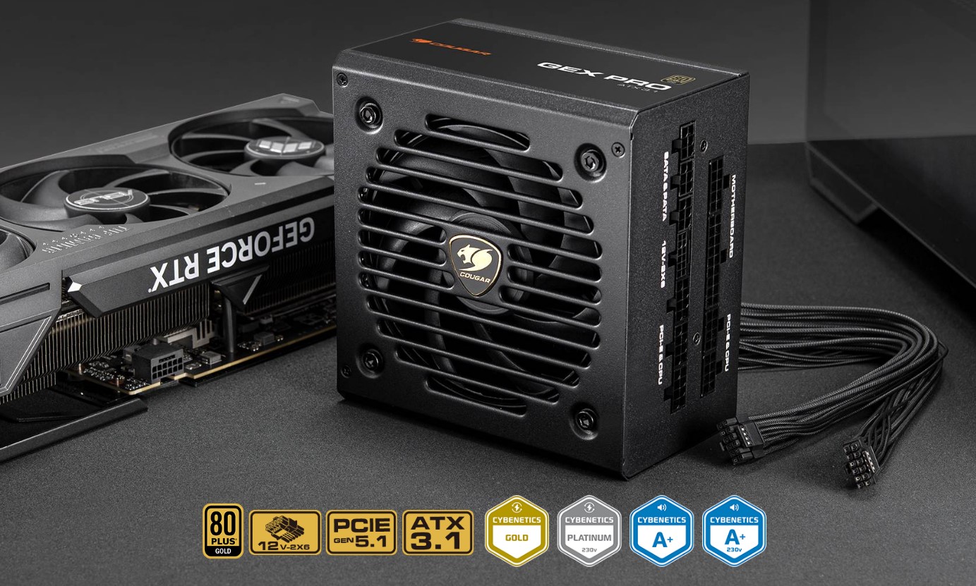Розроблена для підтримки систем наступного покоління серія COUGAR GEX PRO відповідає стандарту ATX 3.1. Маючи власну конструкцію 12V-2X6, вона забезпечує живлення графічних карт наступного покоління через один 12+4-контактний кабель. Маючи рейтинг ефективності 80 PLUS Gold та сертифікацію Cybenetics (лише 850 Вт), вона забезпечує високоякісну стабільність, довговічність та надійність.