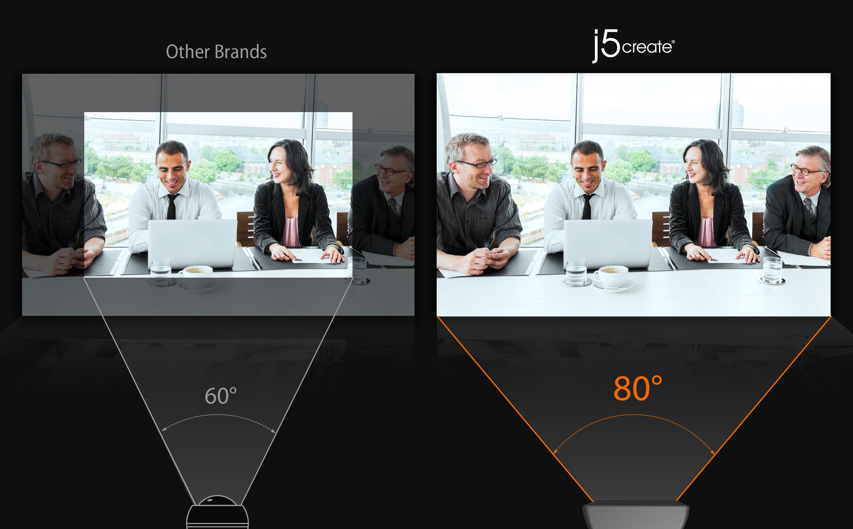 Поле зору 80° разом з обертанням на 360° надає вам можливість бачити більше і вмістити більше в кадр.