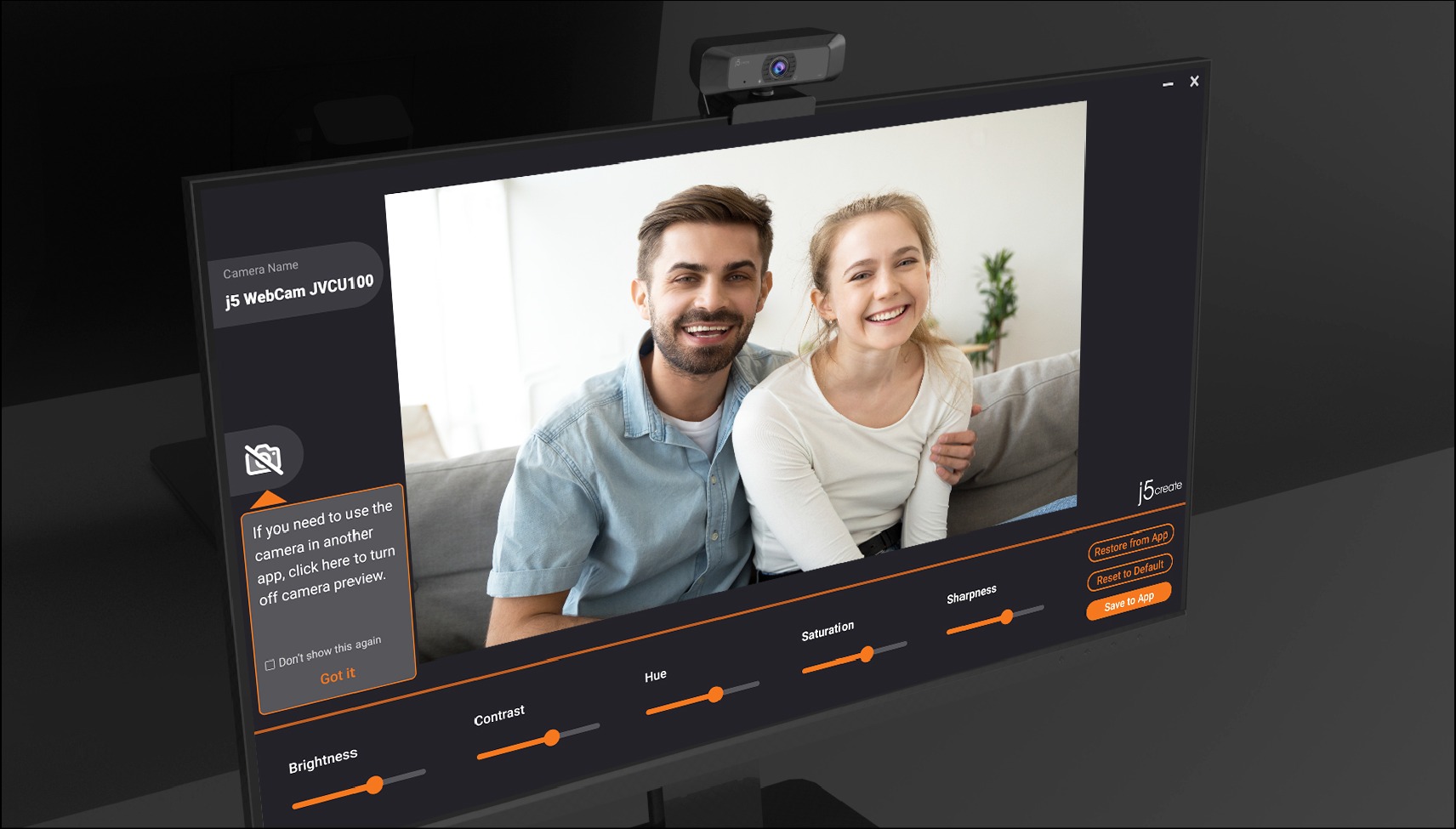 Вебкамера 1080 P, USB-A 3.0, вбудований мікрофон, кріплення 1/4" під штатив, Auto j5create JVCU100-N